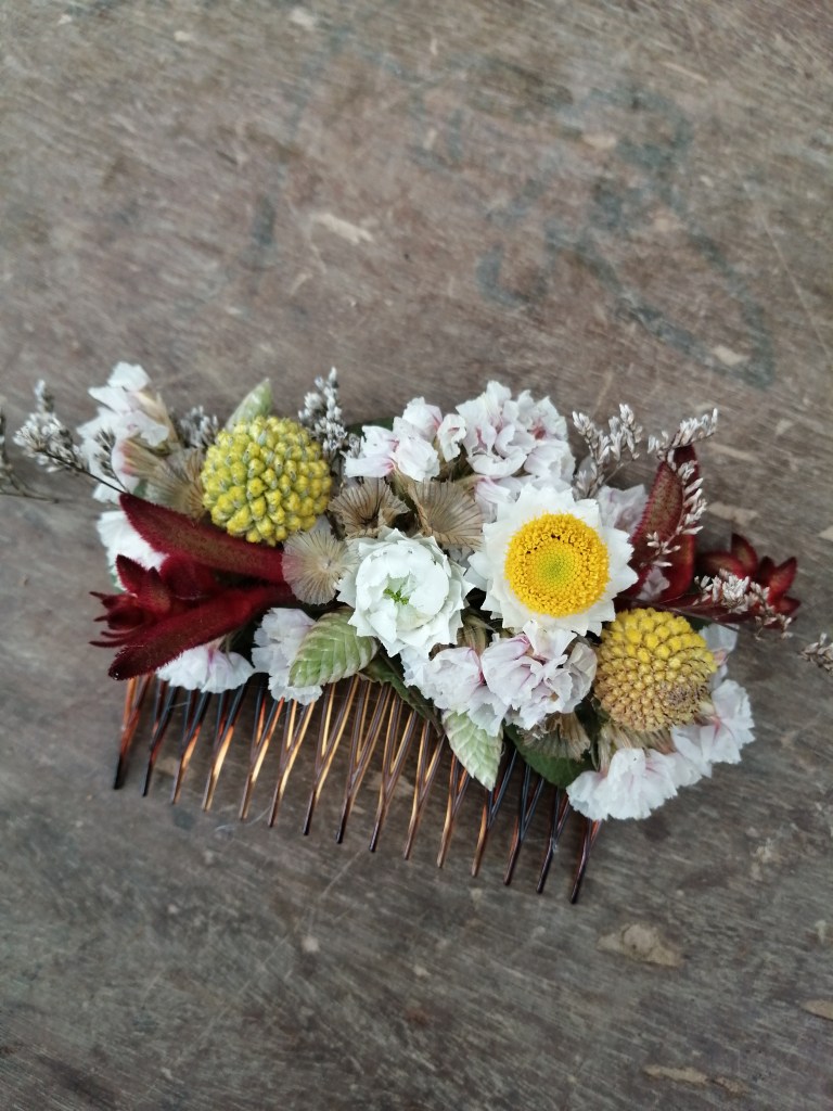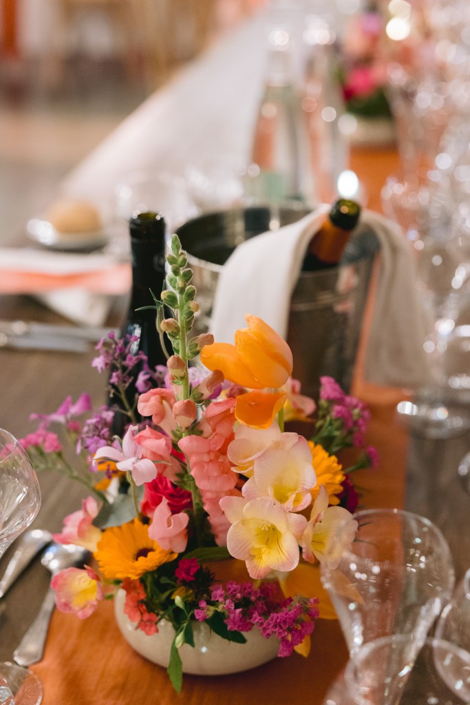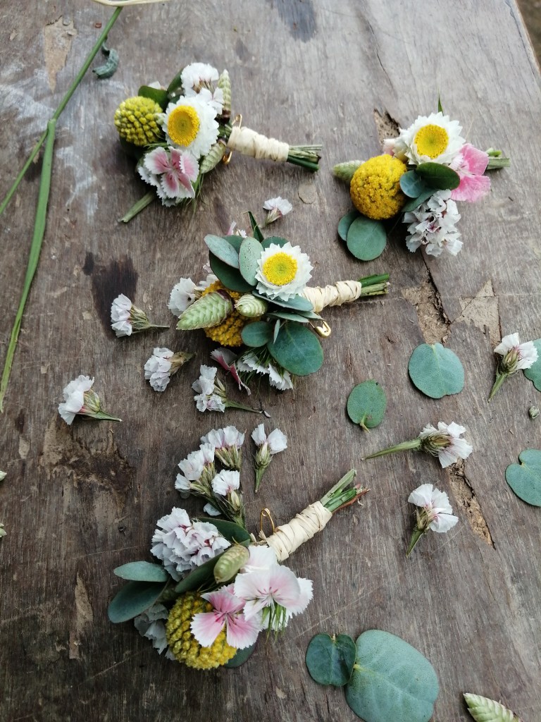 Je vous confectionne les bouquets de marié·es, boutonnières, centres de table, couronnes de fleurs… Nous déterminons la date à laquelle vous venez les récupérer à la ferme et vous les installez vous-même avec soin.